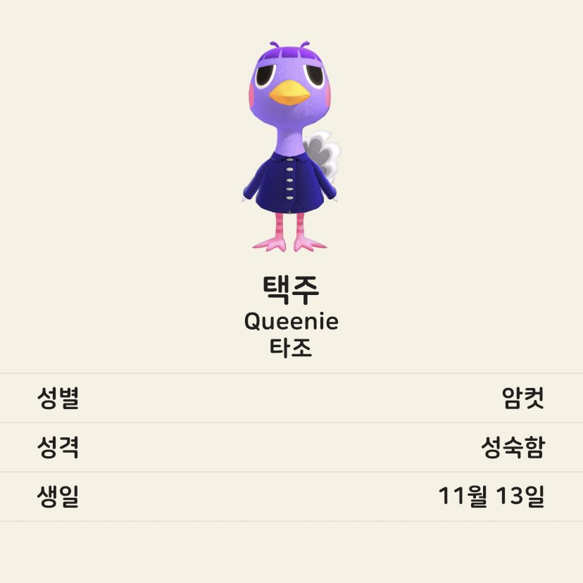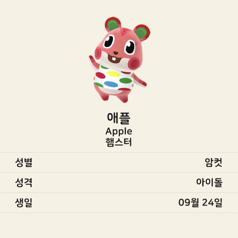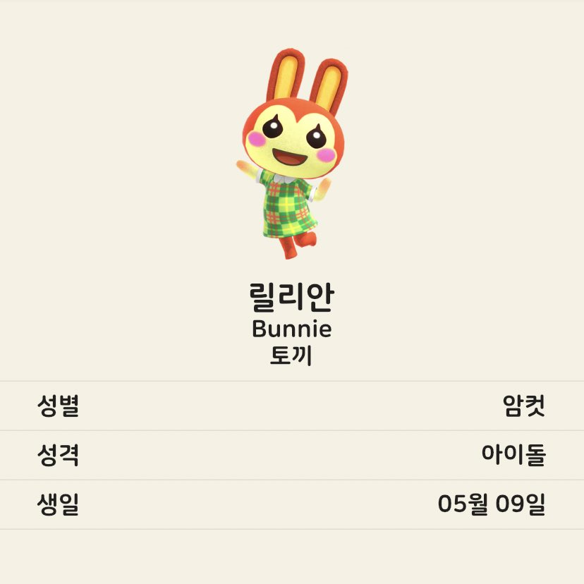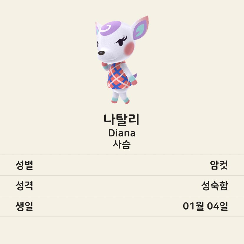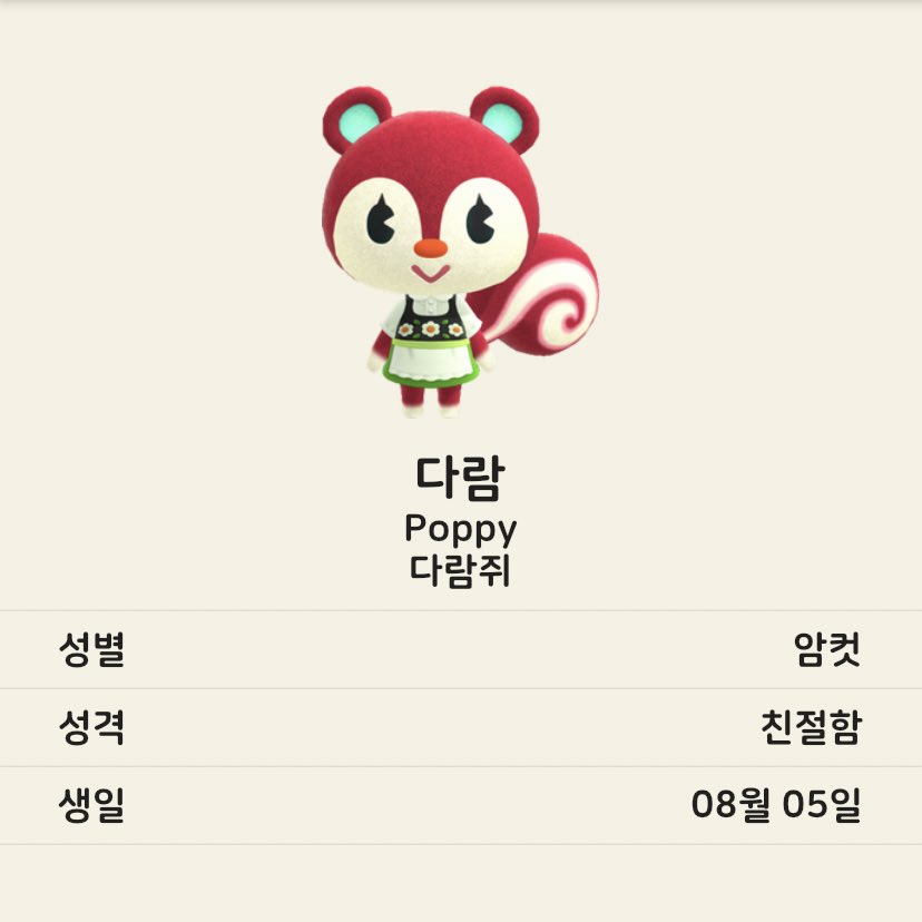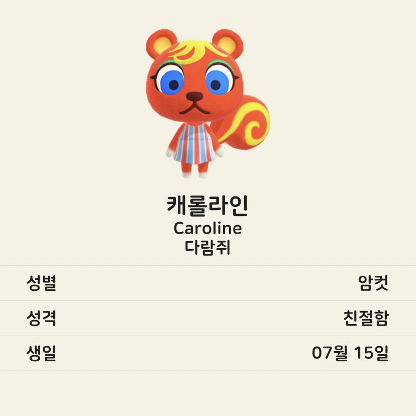 3월 20일에 발매된 닌텐도 스위치용 게임 <모여봐요 동물의 숲>을 요즘 시간 날 때마다 하고 있다. 요 며칠 주민 위시리스트를 만들고 있는데 열 주민들 모두 종이 겹치지 않았으면 좋겠고 성격 분포도 고루 있었으면 하는 바람이라 확정하기가 어렵다. 우리 섬은 현재 다람쥐 주민과 친절 성격 주민이 집중해있다. 기록차원에서 동물별로 마음에 드는 주민들을 모아보았다.
