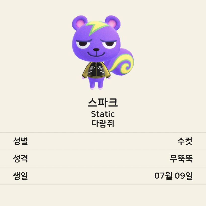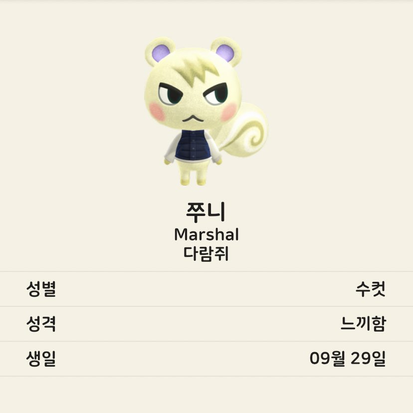 우리 섬엔 다람쥐 주민이 셋 있었는데 초기 주민인 핑키, 실바나와 나중에 온 다람이다. 지금은 다람이만 남아있다. 쭈니는 귀여운데 너무 인기있는 주민이라 다른 섬에서 영입할 엄두를 못내겠다.