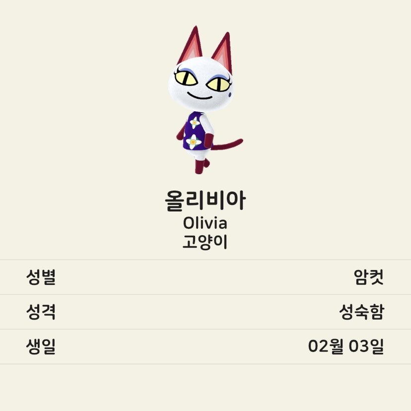 고양이 주민 중에는 올리비아, 히죽, 사이다, 캐비어가 좋다.