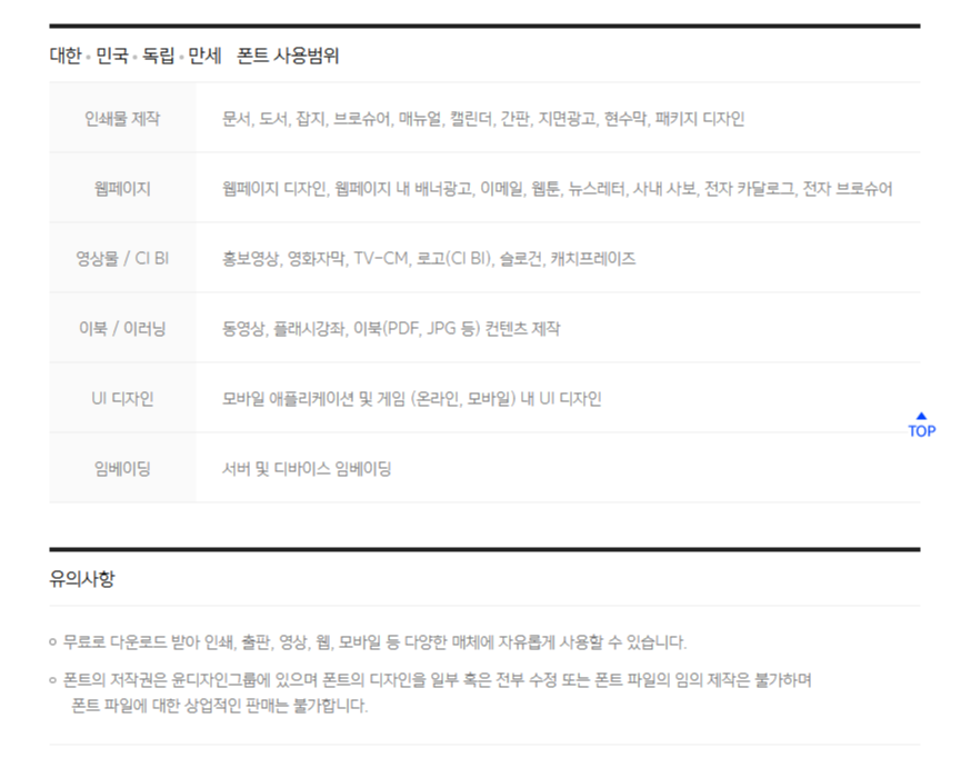 글꼴에 관심이 많은 편인데 이번 작업에 붓글씨 같은 캘리그래피 서체가 필요해서 검색하다 만세체를 찾았다. 회사 업무로 만드는 PPT에 들어갈 거라 무료서체여도 라이선스를 한번 더 살펴보는데 디바이스 임베이딩까지 가능하다니. 감탄할 수밖에.