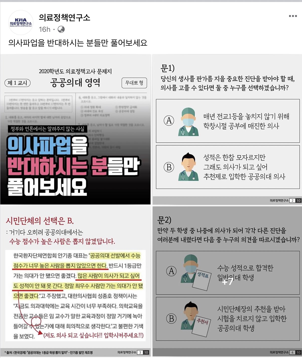 처음 문1)을 보았을때 의사 파업을 반대하는 사람이 비꼬려고 만든 게시물인 줄 알았다. 그런데 이게 의사협회에서 만들어 올린 게시물이라니 어이가 없어서 웃음이 나온다. 이 포스팅으로 반대하는 사람들을 설득할 수 있을 거라고 생각했다고? 진심으로? 그렇다면 정말 헛똑똑이다. 저 집단에 있는 사람들의 공감능력은 대체 어느 수준인 거야? 문4)에 사용된 일러스트 보면 투명하다 투명해^^ 굳이 중년 남성의 우는 얼굴과 B사감 이미지의 젊은 여성을 예시로 드는 것을 보니 수준을 알만하다. 창피한 건 보는 사람의 몫인가. 저런 사람들 때문에 좋은 의사 선생님들도 같이 욕먹는 일은 없었으면 좋겠다.