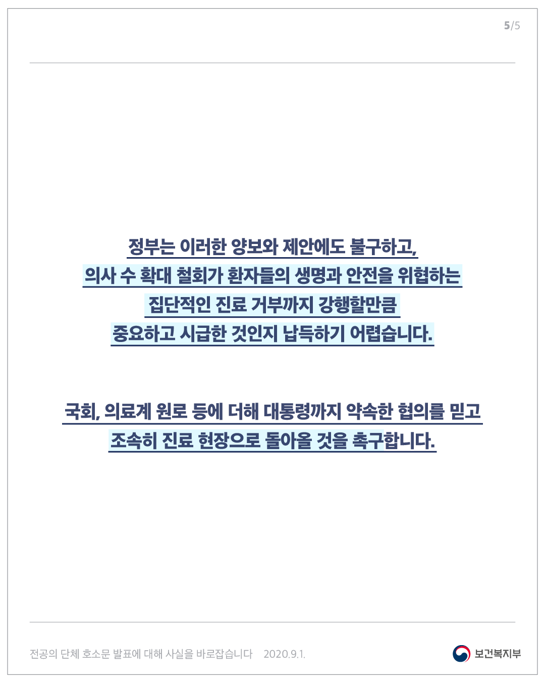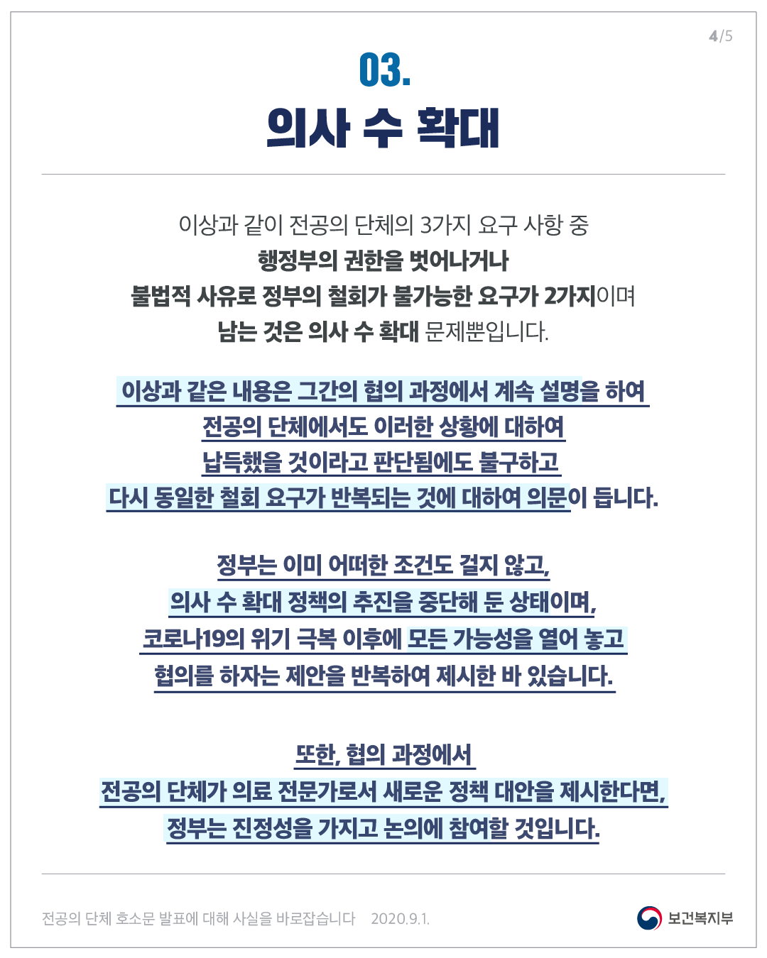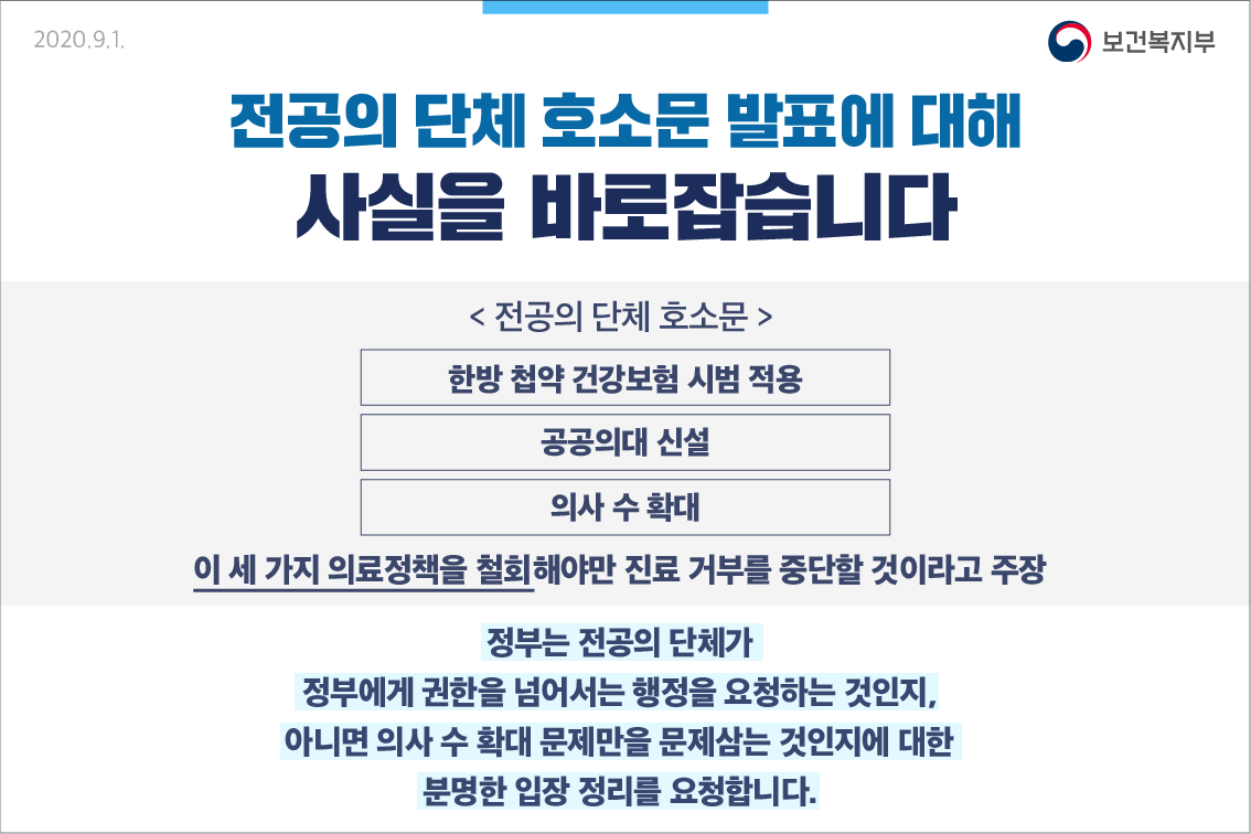 트위터를 보고 있자니 전공의 단체 호소문 발표에 대해 사실을 바로 잡는다는 내용의 보건복지부 글이 올라왔다. 전공의 단체는 의사 수 확대만 물고 늘어지는 것도 부족한가?