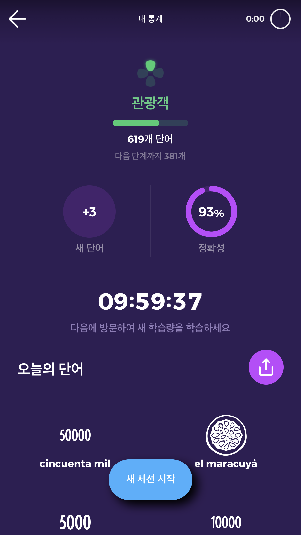 버스에서 출퇴근 시간에 자주 이용하는데 기존 단어를 반복 중이라 학습한 단어가 늘지는 않았다. 욕심내지 않고 꾸준히 하다 보면 언젠가 여행 가서도 스페인어로 말할 수 있지 않을까? 욕심을 내는 순간 조바심이 나서 지치기 마련이니까. (나는 그런 유형의 인간인 것 같다.) 매일은 아니더라도, 언어 학습 진행사항을 기록해둬야겠다.