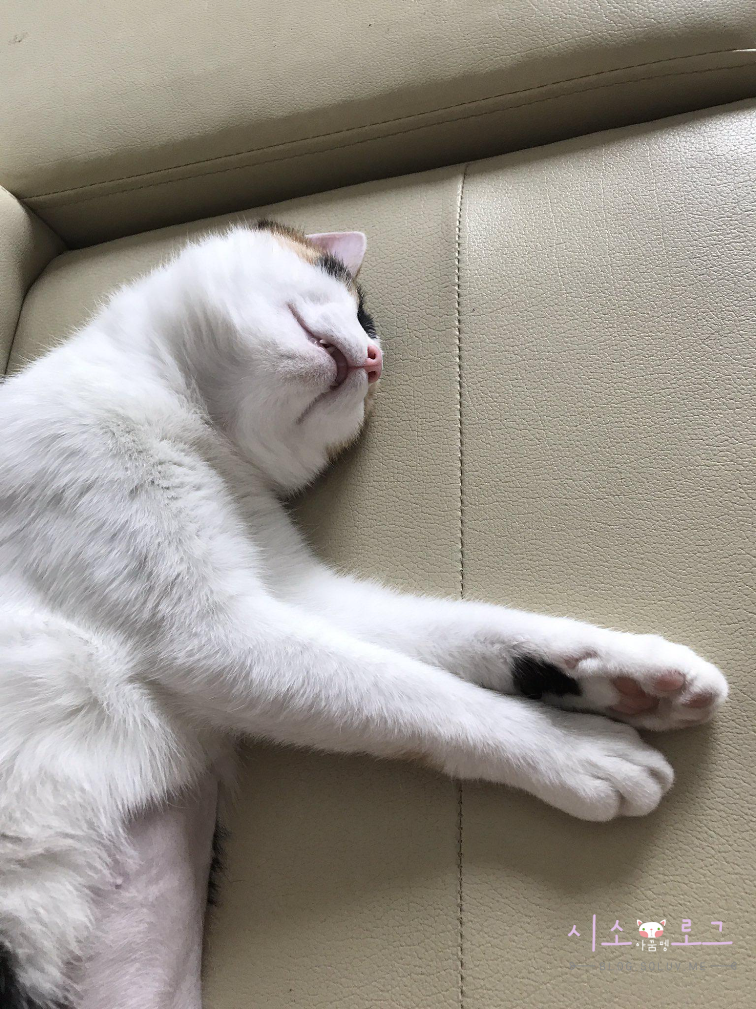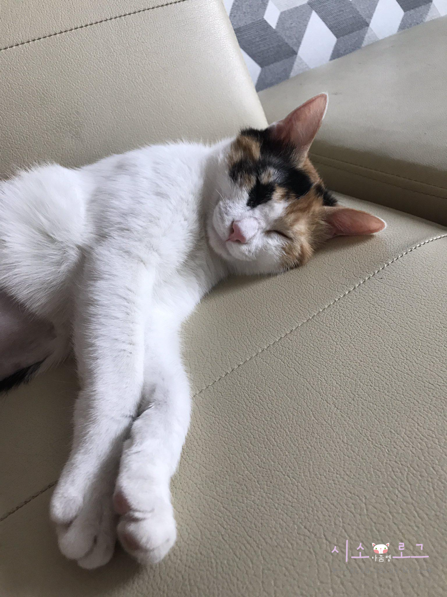 때론 어쩜 저런 자세로 자는 걸까 싶을 때가 있다. 사람이 저렇게 한껏 몸을 말고 자면 뼈마디가 쑤실 텐데. 유연한 자세를 보며 오늘도 요가 영상을 틀어야겠다고 다짐했다. 요가를 열심히 따라 해 본들 내가 고양이들처럼 유연해질 수는 없겠지만 말이다. (참고로 나는 몹시 뻣뻣한 신체를 가지고 있다.)