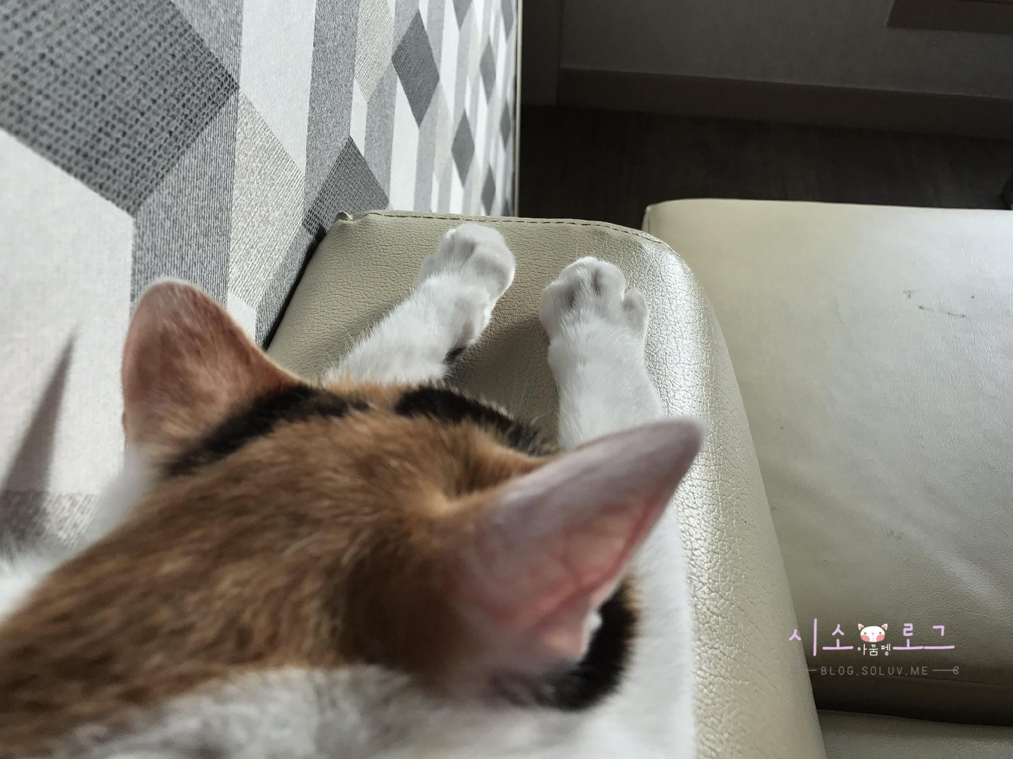 때론 어쩜 저런 자세로 자는 걸까 싶을 때가 있다. 사람이 저렇게 한껏 몸을 말고 자면 뼈마디가 쑤실 텐데. 유연한 자세를 보며 오늘도 요가 영상을 틀어야겠다고 다짐했다. 요가를 열심히 따라 해 본들 내가 고양이들처럼 유연해질 수는 없겠지만 말이다. (참고로 나는 몹시 뻣뻣한 신체를 가지고 있다.)