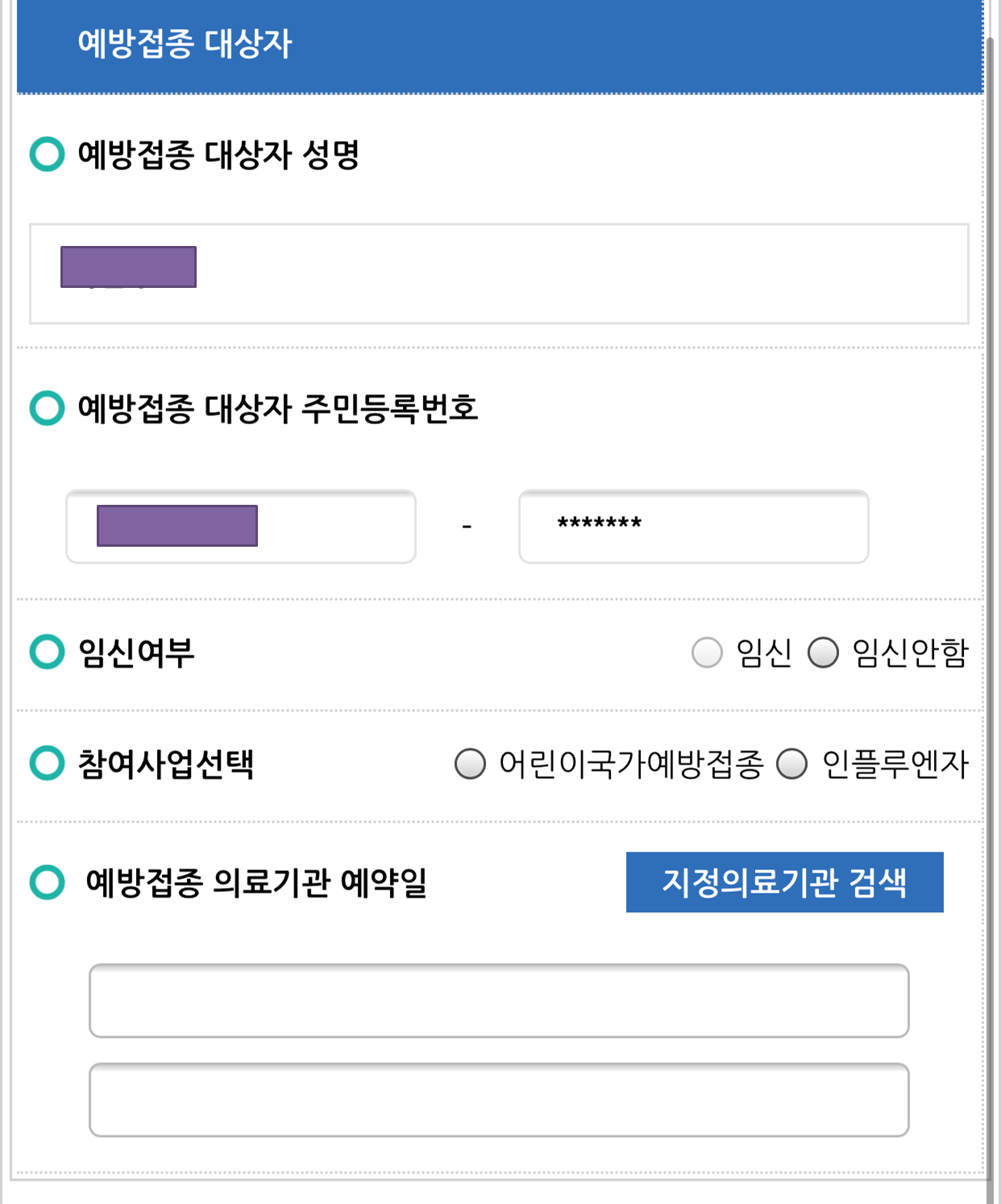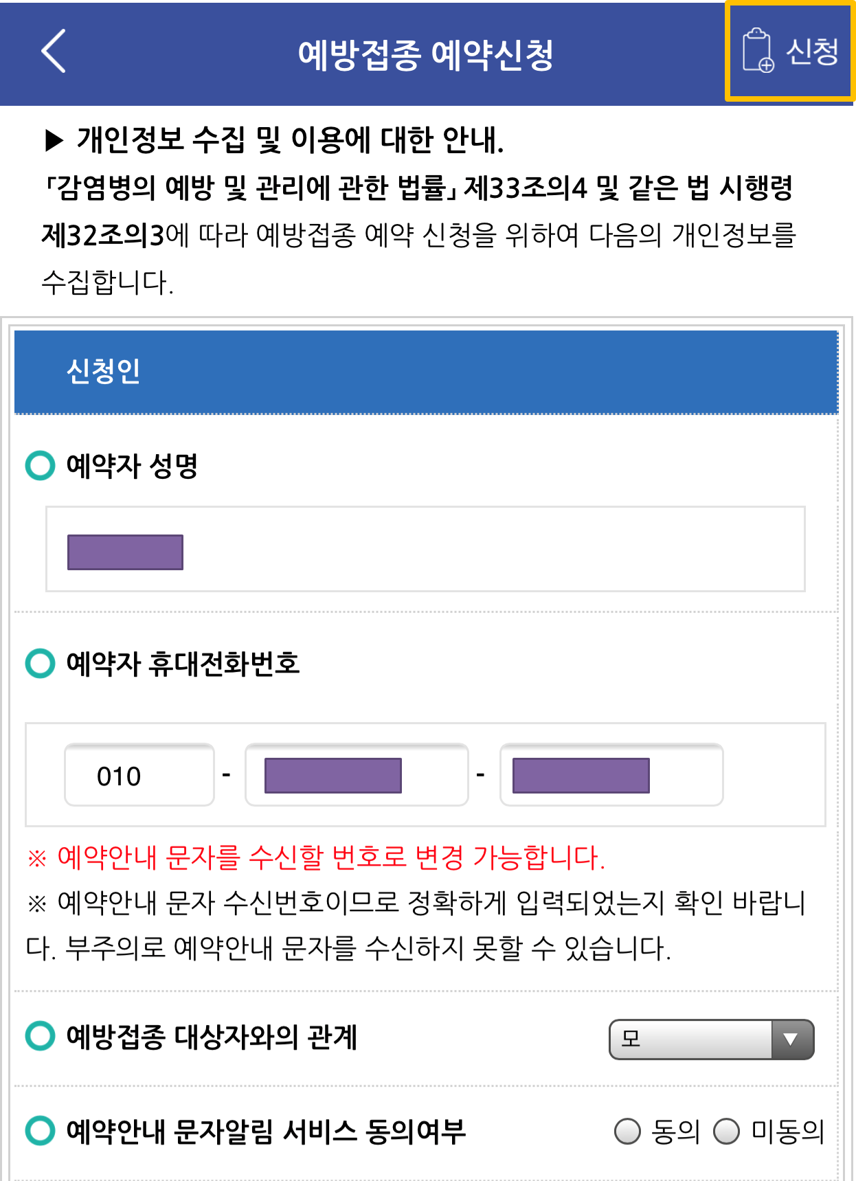 예방접종 예약하기