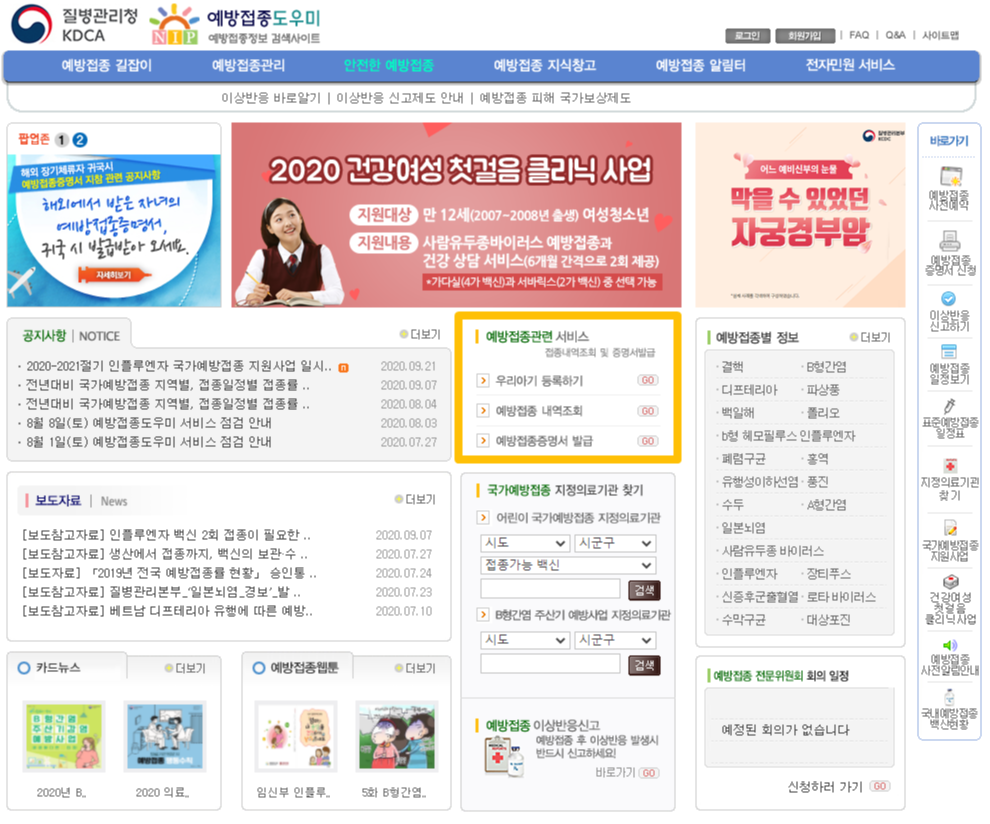 예방접종 도우미 누리집(사이트)