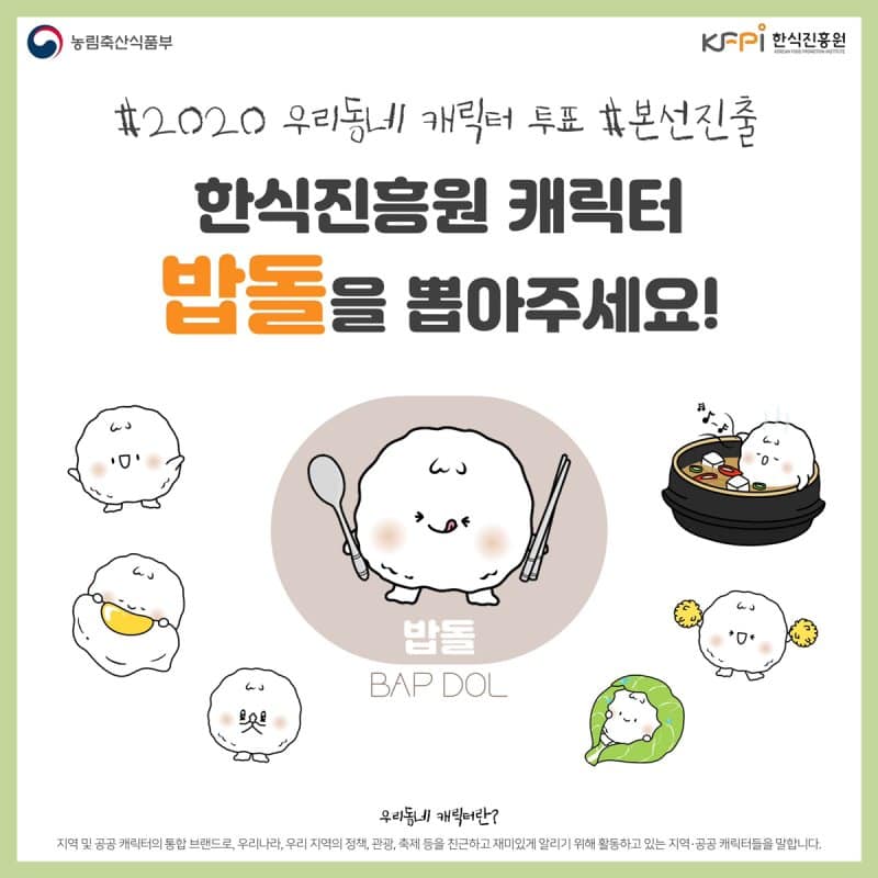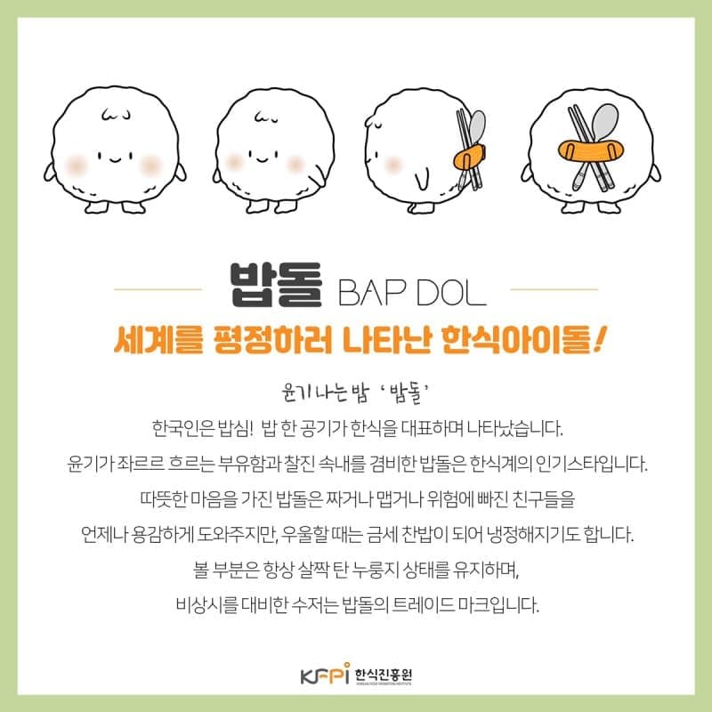 우리동네 캐릭터 한식진흥원 밥돌이 너무 귀여워요