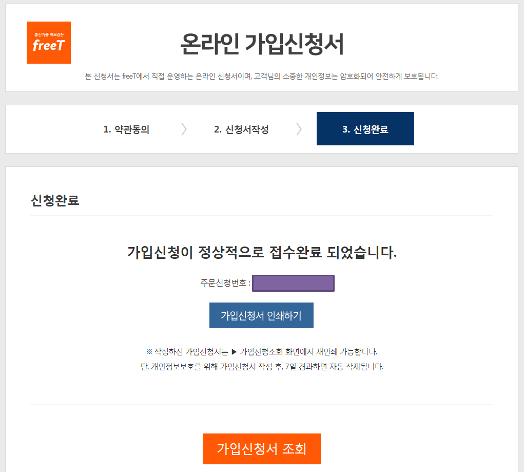 본인인증용 유심 신청을 위해 희망하는 전화번호 뒷자리를 1순위, 2순위로 입력할 수 있습니다. 희망번호가 없을 경우 임의 번호로 개통될 수 있다고 하네요.
