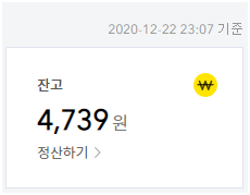 몹시 티끌같은 수익이지만 티끌 모아 큰 티끌이라지 않던가! (←아님) 티끌이라도 정산을 할 수 있으려나 싶어서 홀린듯이 정산하기를 눌렀다. 과연 이 티끌은 내가 받을 수 있는 티끌인가!!!!